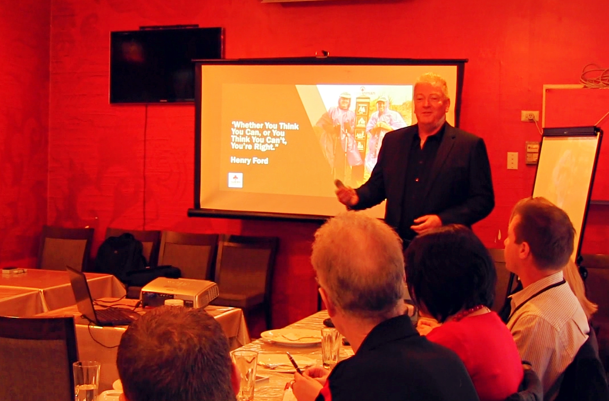Tony Inman presenting to a mastermind group on ‘self-talk’ in 2016.